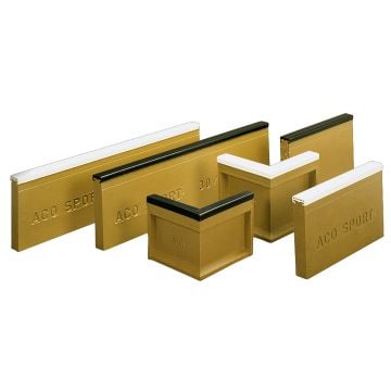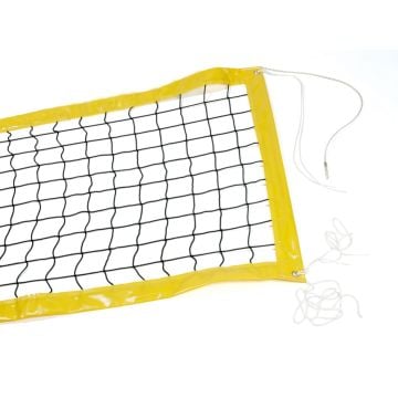 Beach volleyball or beach tennis court marking (dimensions 9 x 18 m) with adjustable plastic corner elements DBGM (also adjustable to dimensions 8 x 16 m). The dark blue polyester strap is 50 mm wide with a marking in the middle. The set is complete with 4 plastic stakes including 23 cm long bungee tensioning lines. Top tournament quality.