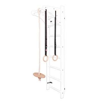 Die Sprossenwand zeigt ihre Einzigartigkeit durch die vielen Elemente, die sich an den Sprossen der Sprossenwand anbringen lassen. Das Zubehör ist höhenverstellbar je nach Raumhöhe, Körpergröße und Trainingswunsch und ermöglicht ein Ganzkörper Workout an nur einem Gerät. Zu dem Zubehör gehört:
