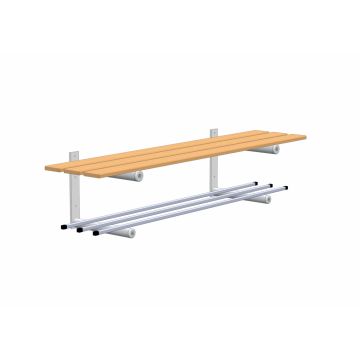 Changing room benches and cloakrooms for wet and damp rooms must meet special requirements As well. To withstand the conditions in swimming pools, the bench should be made of anodized aluminum or stainless steel. Thus, the changing bank is resistant to fungi, bacteria and rust. Wet room suitable benches are also weatherproof and made for outdoor use.