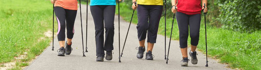 The most important equipment for Nordic Walking are the Nordic Walking poles. The correct length of the poles is crucial in order to be able to perform the correct Nordic Walking technique. Technical features such as "the long arm" and the opening and closing of the hands can only be carried out properly if the length of the Nordic Walking poles is exactly adapted to your own height. Using a simple formula, the ideal Nordic Walking poles can easily calculate length: height x 0.66.