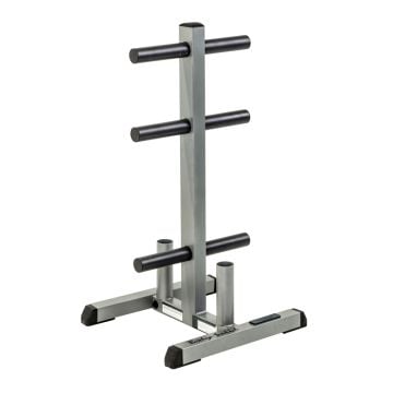 There are many different models, products and designs on weight plate racks or weight plate racks. You can e.g. choose between a plate stand for a few plates and a weight plate rack for a large number of plates. When buying a weight plate rack, you should always consider your training preferences and the desired use, as well as space for storing weight plates or weights. Weight plate racks do not necessarily have to stand on the floor, but some models can also hang on the wall (bracket with wall mounting). The hanging weight plate racks (bracket with wall mounting) save a lot of space. However, these have a limit in their maximum load capacity of weights or the storage of weight plates (limited weight load). In addition, there are elongated versions of weight plate racks and weight plate racks in the form of a tree (barbell tree). The shape of a tree (dumbbell stand or weight stand as a dumbbell tree) is very popular in gyms compared to the long version. Elongated weight plate racks have the advantage that they usually offer several insertion options in the upper area. There are also disc stands or a rack (barbell tree) where you can store weight plates as well as barbells, barbell bars, bars (bar holders), barbells and dumbbells. The rack combines the storage of dumbbells, bars and slices.