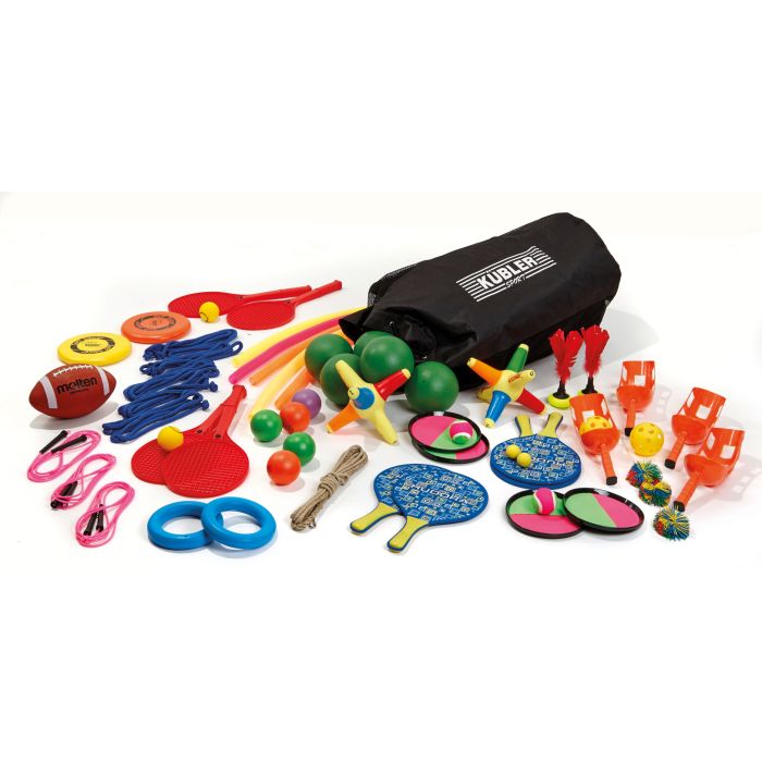 The contents of this game bag have been compiled according to the wishes and recommendations of various handball associations. The contents consist of throwing and catching equipment, rebound games with different balls and rackets, balls, and jump ropes.