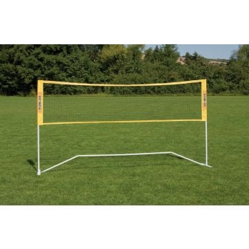 The mobile net by Hammer® combines three different sports in one set. The practical carrying case, which also serves as a net stand, includes one net each for tennis, volleyball, and badminton. With the telescopic net posts and the respective nets, you can adjust the height to that of a volleyball net (2.24 m), a badminton net (1.55 m), or a tennis net (1.02 m) according to your preference and in seconds. The net posts are very elastic and provide good net tension. The set is ideal for the beach, the garden, the playground, or the sports hall due to its easy transport and quick setup and dismantling. Three ground anchors are also included, which ensure good stability even in windy conditions. If there is no suitable surface for the ground anchors, the case can also be stabilized with heavy objects.