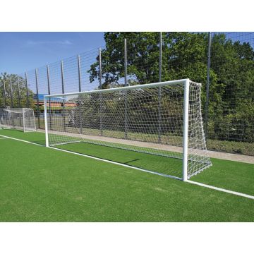Sull size soccer goals, i.e. those soccer goals that are used for a normal sized soccer field / large field, have a height of 2.44 meters and a width of 7.32 meters. This standardized dimension is determined by the soccer association. As a rule, not only competition goals, but also youth goals and training goals are of this size.