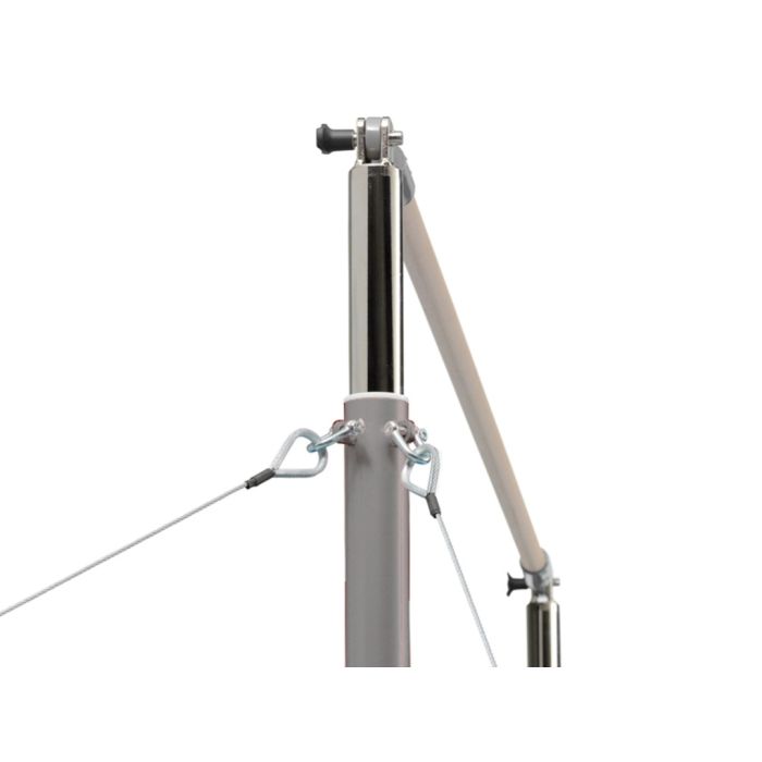 Tensioning turns a free-standing uneven bars into a tension uneven bars. The set includes ropes, chains, and quick release fasteners. Compatible with the freestanding Spieth Uneven Bars Club, item G2948.